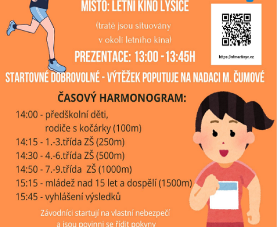Startovné dobrovolné - výtěžek poputuje na nadaci M. Čumové